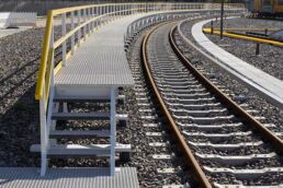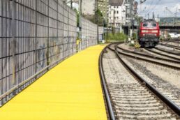 GFK-Dienstwege sowie Flucht- und Rettungswege erhöhen die Sicherheit entlang der Strecke und ermöglichen Mitarbeitern wie auch Fahrgästen, Gleise auch bei Schnee und Nässe sicher zu überqueren.