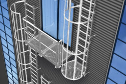 Feste Steigleitern für den sicheren Zugang zu Anlagen, Schächten und technischen Bereichen.